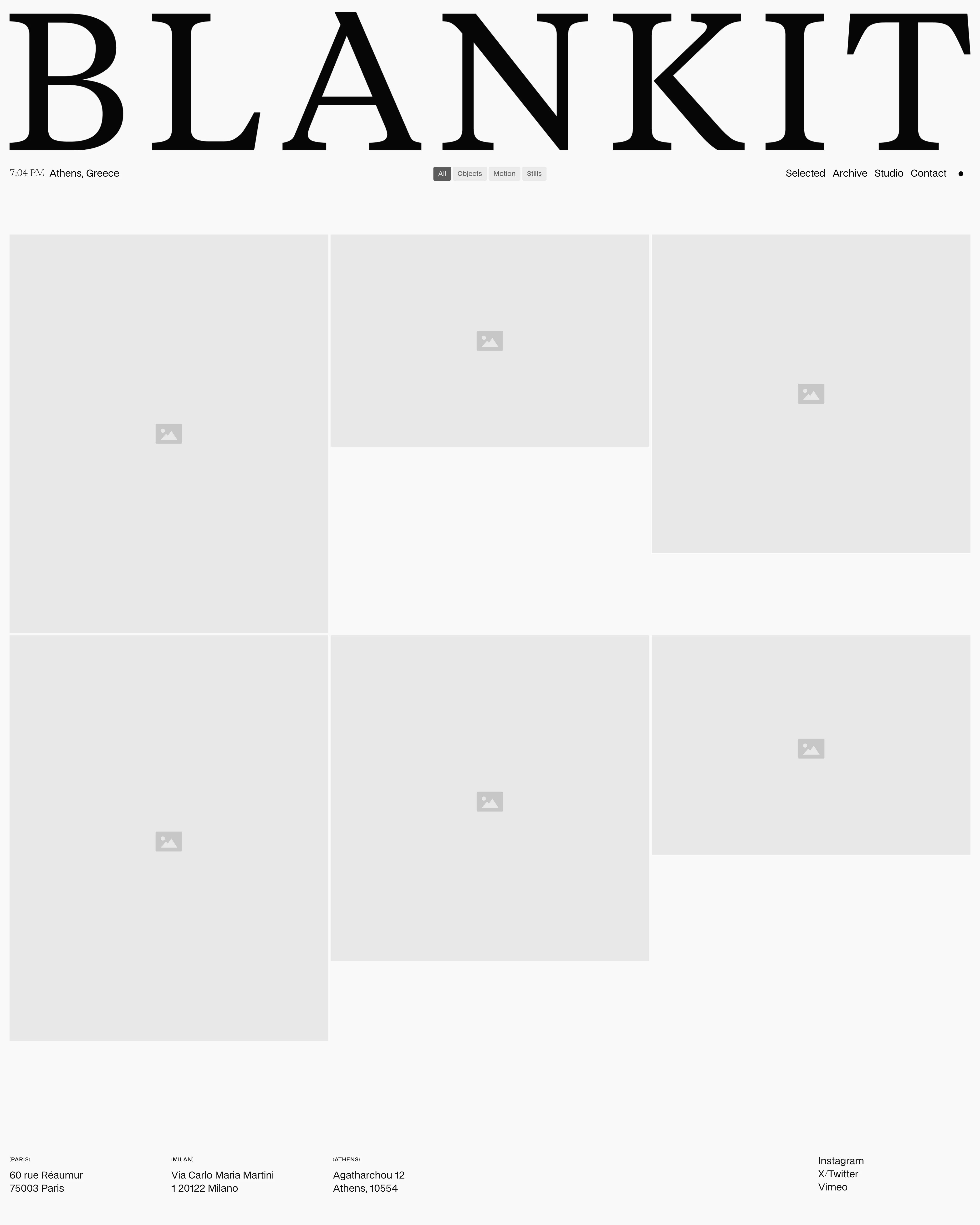 The template includes 8 essential pages: Home, Work, Archive, Case Study, About, Contact, Imprint, and 404 — providing a complete and professional portfolio structure. Use the Work and Archive pages to present curated projects, while dedicated Case Study layouts allow you to tell deeper visual stories behind your shoots.